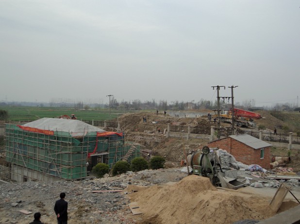 中派站工程是本次肥西縣濱湖泵站更新改造工程的第6標(biāo)段,工程位于肥西縣上派鎮(zhèn)與嚴(yán)店鄉(xiāng)交界處,距合安高速公路約2km。為老站拆除新建項目,是以灌溉為主兼有排澇功能的泵站。為了保證灌區(qū)農(nóng)田春耕、春種用水需要,我公司自開工以來就加大投入、積極準(zhǔn)備、合理安排。在所有6個標(biāo)段中,第一個澆筑底板、第 一個實(shí)現(xiàn)結(jié)構(gòu)封頂、第一個開始設(shè)備安裝。為工程按期完工打下了良好的基礎(chǔ)。