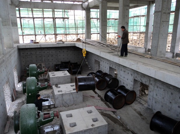 肥西縣濱湖泵站更新改造工程作為國家擴(kuò)大內(nèi)需項目之一,由我公司施工的中派站工程自開工以來,我公司就組織精干力量投入現(xiàn)場,保質(zhì)量、搶進(jìn)度。在經(jīng)過四個多月的緊張施工后,目前主體工程已經(jīng)封頂,設(shè)備安裝工作已經(jīng)開始。