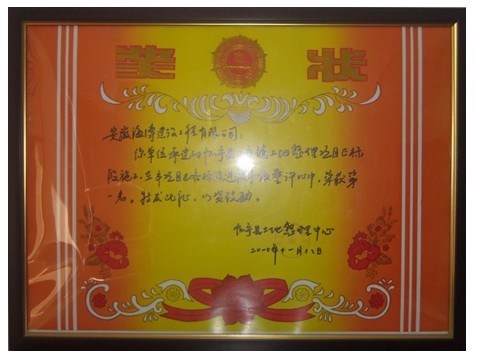 2009年12月,由我公司承建的懷寧縣小市鎮(zhèn)土地整理項目E標段,在市場管理公司和項目部全體員工的共同努力下,在由懷寧縣土地整理中心組織的項目區(qū)各標段進度和質(zhì)量評比中,榮獲第一名。