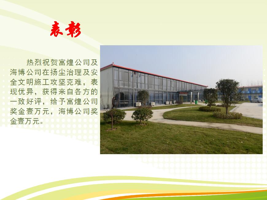 5月初,中央環保督察組進駐合肥,開展為期一個多月的水、土壤和大氣污染等環保治理工作督察。海納項目部迅速響應,積極行動,組織人員對現場安全文明施工和揚塵治理工作進行全面梳理,排查安全隱患,落實整改措施。沿施工道路設立圍擋,張掛綠籬、公益廣告,場區裸露土體全覆蓋,配置霧炮機,栽種綠化苗木,并對門前道路、工地大門出入口、辦公區、場內臨時道路、土方作業面等每日定時灑水降塵。劃分責任區,明確責任人,建立獎罰制度,使整個項目的施工環境上了一個臺階。