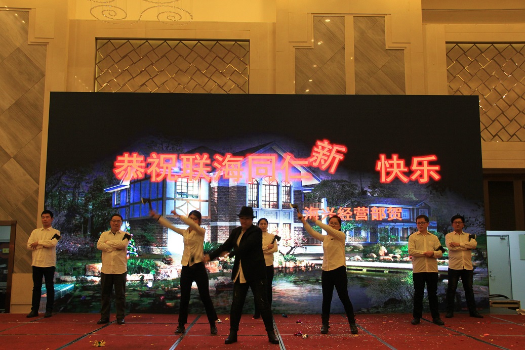 本次聯(lián)歡會全部由集團(tuán)同仁自編自演,主題鮮明,內(nèi)容豐富,形式多樣,有唱歌、跳舞、小品、魔術(shù)、古箏、吉他等等,不僅有集團(tuán)同仁們的精彩表演,還有同仁家屬們的傾情演繹。現(xiàn)場氣氛熱烈異常,叫好聲和歡呼聲此起彼伏,其中幽默小品《開學(xué)了》、搞笑舞蹈《功夫3》、吉他彈唱《平凡之歌》、動人合唱《東方之珠》、深情朗誦《我的南方和北方》、趣味游戲《踩氣球》、《聞雞起舞》等掀起一陣陣演出高潮,盡情地展示了聯(lián)海人的多才多藝,深情地謳歌了聯(lián)海人揚(yáng)帆起航的豪情壯志,大力地弘揚(yáng)了聯(lián)海人勇于創(chuàng)新的精神,完美地呈現(xiàn)了聯(lián)海文化建設(shè)的新氣象。