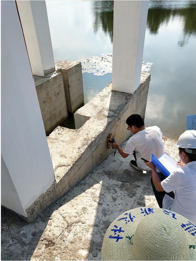 巢湖市義城圩義城泵站進(jìn)水閘排架鋼筋保護(hù)層厚度、間距及分布檢測