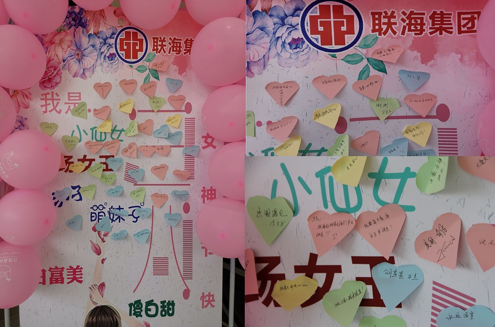 “小驚喜”過后,女神們紛紛在海報(bào)上貼上了可愛的標(biāo)簽及祝福語:小仙女,萌妹子,白富美,職場女王,健康生活、快樂工作,聯(lián)海集團(tuán)越來越好,集團(tuán)發(fā)展蒸蒸日上等。一張張愛心標(biāo)簽充分展現(xiàn)了自己的獨(dú)特風(fēng)貌和對集團(tuán)的美好祝福。